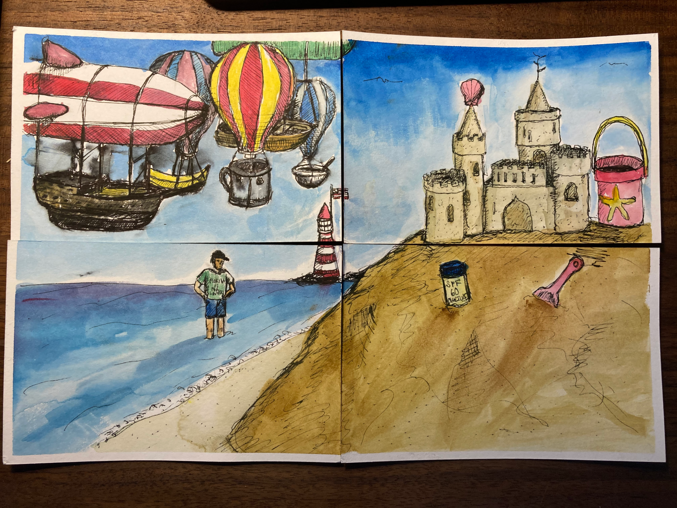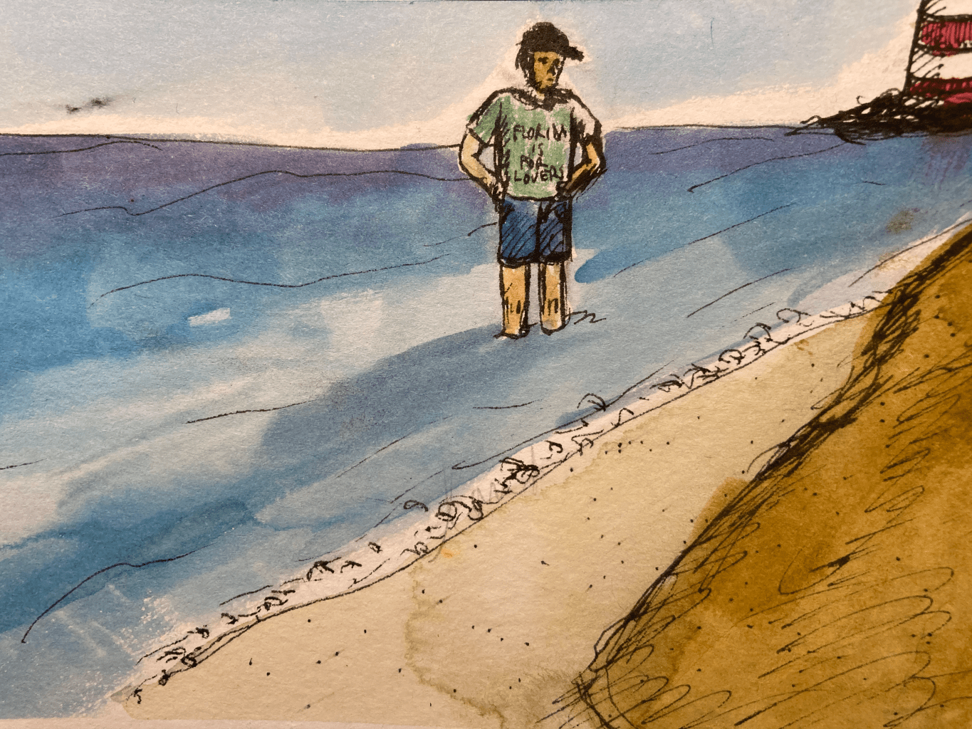 And I wanted to draw more…. I have felt a little creatively muted in recent years. Kavarna, the coffeehouse my wife and I owned, stopped being a creative outlet for me several years before we sold it in 2019. And what energy I had at the end of the day went into the community. I started a literary festival, I fought Walmart, I ran for elected office (and lost), and served on boards. I set aside my own personal creative endeavors to get some things done and I did have a few positive impacts. But I fell out of the personal habits that nursed my creativity. And recently when I sat down to design product labels for our food business, I felt becalmed. Writing is one thing, but to have any success with visual design you need to exercise that part of your brain. It doesn’t matter whether its good, the act of drawing is a form of visual problem solving that you can apply to design and it gets better with practice. So when we temporarily relocated to Florida for a couple of weeks, I took the opportunity to make drawing postcards a daily thing. I thought I’d share one of these, actually a set of 4.