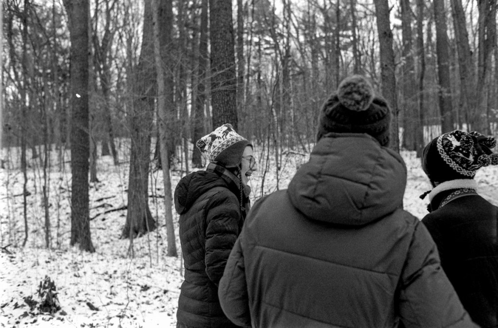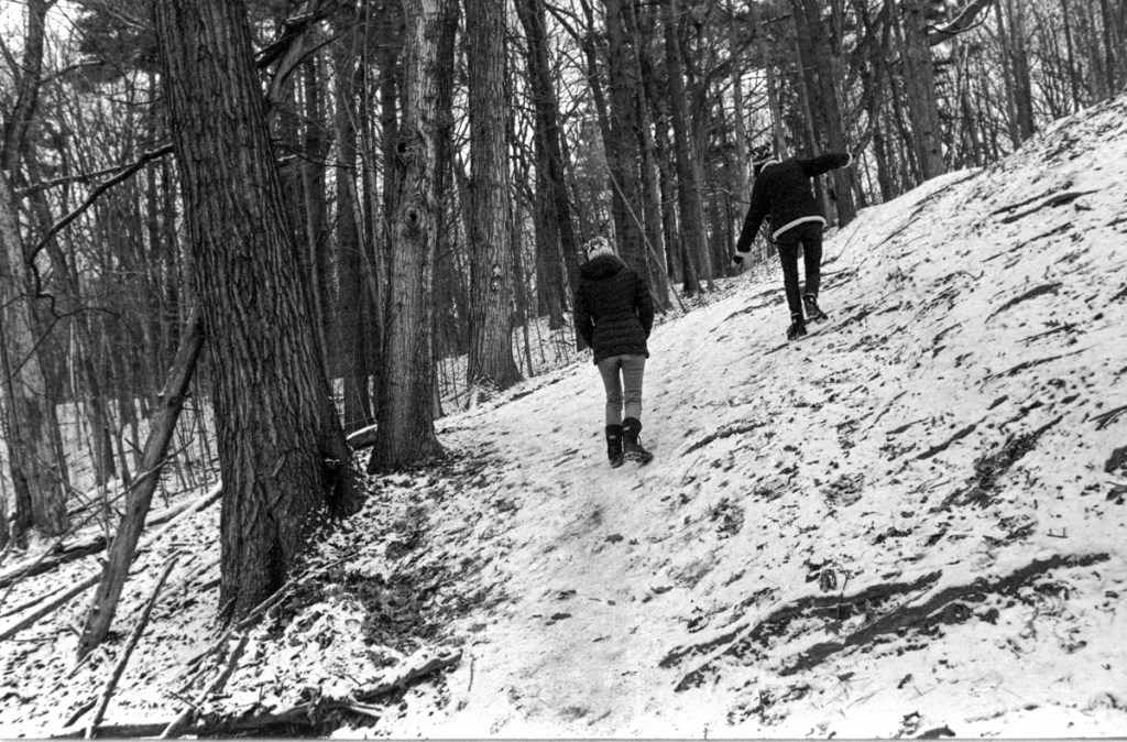 Baird’s Creek Greenway is an incredible city park that buttresses 4 miles of the eponymous creek. It’s just under 400 acres in size and has 14 miles of trails, ski trails, bike trails, as well as frisbee golf, excellent sledding hills, and more. Be prepared to get lost! The signage leaves something to be desired. It’s something of an important park to our family. This was my dad’s favorite place in town to photograph. In the early 2000s you might have found him here under his hood focusing against the ground glass of his 4×5 field camera. We scattered a portion of his ashes here. It was an obvious choice for our New Year’s Day hike.